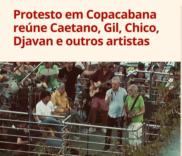 As manifestações convocadas pela Rede Globo contaram com apresentações culturais dos artistas empregados do clã Marinho, que reforçaram o tom político de apoio ao governo Lula, presidente do “país das maravilhas”. No Rio de Janeiro, estavam previstos shows de Caetano Veloso, Gilberto Gil e Chico Buarque. Em Brasília, Djonga e Chico César se apresentariam à tarde. Já em Salvador Daniela Mercury, Wagner Mouse e Ivete Sangalo. Na capital paulista, entre vários artistas “globais” que se apresentaram estão Leoni, Jotapê, Marina Lima, Emicida e Nando Reis. Em geral a fala das “celebridades chapa branca”, esteve focada em uma narrativa totalmente ilusória e irreal para o proletariado, apresentado o Brasil como o “país da igualdade e harmonia social”.