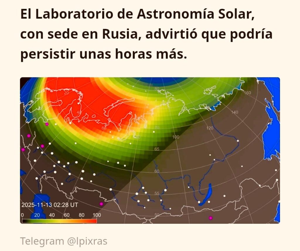 Especialistas em geofísica alertaram que a Terra enfrenta uma nova e mais poderosa tempestade solar geomagnética do que a vivida há cerca de um mês passado e que desencadeou uma série de efeitos “auroras boreais” incomuns observadas em várias partes do planeta, inclusive no Cone Sul do continente Americano. Embora esta última erupção de radiação e plasma, produzida pelas ejeções de massa coronal do Sol (CMEs), tenha sido a mais forte em 21 anos, “Não esteve nem perto de ser a mais forte”, afirmou Shawn Dahl do Centro de Previsão Clima Espacial da Administração Nacional Oceânica e Atmosférica dos EUA, citado pela revista Scientific American. “Embora isso tenha sido histórico, não chegou nem perto do nível de 1921 e 1859”, disse ele, referindo-se às duas tempestades magnéticas mais poderosas da história já registradas pela ciência.
