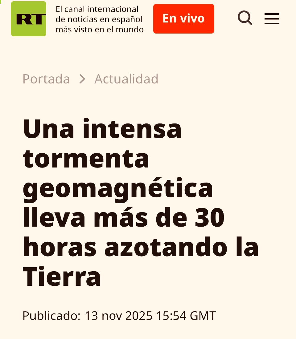 Uma forte tempestade geomagnética tem afetado o campo magnético da Terra por aproximadamente 36 horas, informou o cientista Sergei Bogachev, do Instituto de Pesquisa Espacial da Academia Russa de Ciências, nesta quinta-feira, 13/10. O fenômeno começou às 00h00 GMT desta quarta-feira. Em seu pico, o índice Kp, que mede a perturbação do campo magnético, atingiu valores de G4,3 e G4,7, tornando-se a tempestade mais forte deste ano até o momento. No entanto, não atingiu o nível G5 (extremo) inicialmente previsto. Embora a tempestade esteja diminuindo gradualmente, o Laboratório Russo de Astronomia Solar alertou que ela poderá persistir por mais algumas horas, até o final do dia. Nesse contexto, espera-se que o oval auroral, a faixa ao redor dos polos magnéticos onde ocorrem as auroras, se desloque do Hemisfério Ocidental (EUA e Canadá) para o Hemisfério Oriental durante a noite. Contudo, auroras intensas como as registradas anteriormente não serão visíveis. Atualmente, a atividade solar foi consideravelmente reduzida após a recente sucessão de intensas erupções solares, e considera-se improvável que ocorram novas explosões em grande escala.
