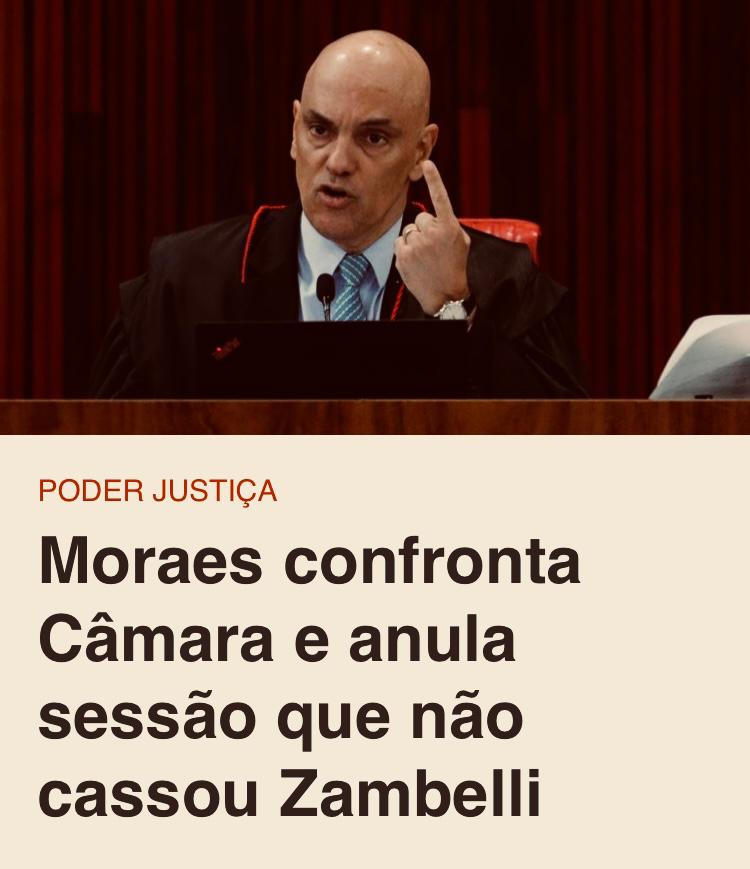 O Ministro togado e também novo “imperador” do Brasil, Alexandre de Moraes, desconsidera a sessão plenária da Câmara dos Deputados desta 5ª feira, em que deputados decidiram manter o mandato de deputada Carla Zambelli que havia sido condenada arbitrariamente pelo STF e está presa na Itália a pedido da Polícia Federal do governo Lula. Para Xandão, que segue fielmente as ordens do Deep State, as deliberações do parlamento brasileiro só tem validade se estiverem alinhadas politicamente com a Governança Global do Capital Financeiro, que neste caso já bateu o martelo para defenestrar qualquer possibilidade de derrota do atual governo neoliberal da Frente Ampla nas próximas eleições.