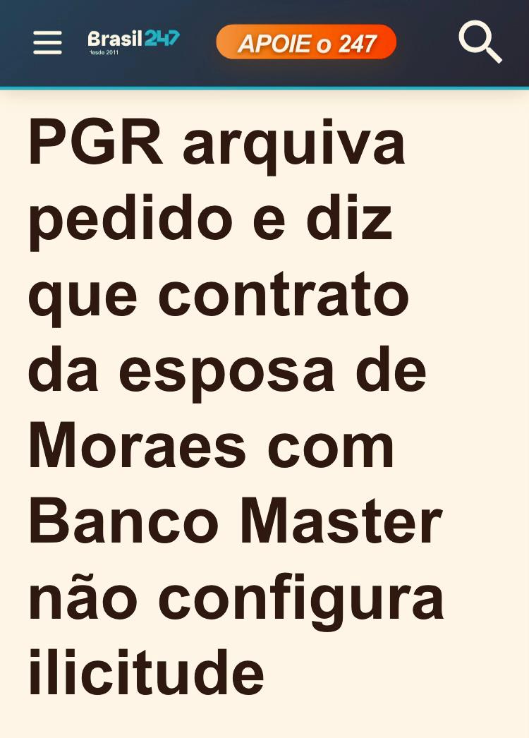 Após Xandão processar e ameaçar prender uma jornalista que trouxe à tona uma informação verídica, isto em um suposto “Estado Democrático de Direito” (Risos….), o próprio Ministério Público Federal foi obrigado a reconhecer a existência do acordo comercial entre a família Moraes e Vorcaro. Entretanto a “fritura” de Xandão, apesar do arquivamento do processo contra o contrato imoral celebrado com o Master, vai continuar “quente”…