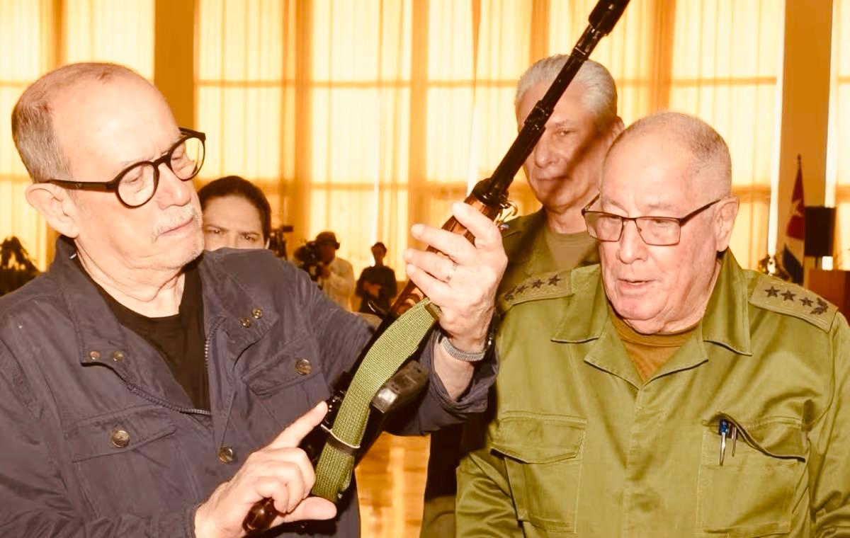 Como figura pública Silvio Rodríguez pediu o fuzil dele e logo foi atendido por Canel e o ministro da Defesa de Cuba, Álvaro López Miera, como aliás todo burocrata castrista tem um bom fuzil mas a população cubana não está armada de conjunto para enfrentar a agressão imperialista até porque a cúpula do regime teme a própria ação independente das massas que poderia desembocar em uma revolução política que a superasse enquanto casta parasitária como nos ensinou Trotsky! Enquanto vemos a demagogia do regime castrista, que imediatamente entregou um fuzil a Silvio Rodriguez para as câmeras de televisão e fotos noticiadas pela imprensa mundial… Díaz-Canel nem cogita armar as massas e recriar os Conselhos Populares em Cuba!