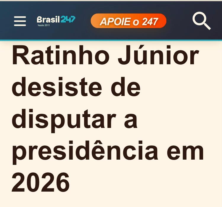 O governador do Paraná, Ratinho Júnior, filado ao PSD de Kassab, anunciou nesta segunda-feira (23/03) que não será candidato à Presidência da República nas eleições de 2026. O filho do apresentador Ratinho, ambos bolsonaristas “raiz”, sabem muito bem que estas eleições já estão previamente estabelecidas para a vitória fraudulenta de Lula, independente de ter votos ou não para bater seu competidor direto, ou seja, Flávio Bolsonaro, outro filhote de ratazana da extrema direita. Todos os políticos burgueses experientes deste país, tem pleno conhecimento do resultado eleitoral que surgirá no cenário político deste ano, apesar de Lula estar bem atrás do Bolsonaro Júnior nas reais intenções de voto, o petista será proclamado reeleito, sendo obrigado a conviver com uma derrota acachapante na Câmara dos Deputados e no Senado Federal. Isto porque para os interesses do capital financeiro internacional a continuidade do governo burguês da Frente Ampla é fundamental, entretanto este quarto mandato de Lula a frente da gerência do Estado capitalista no país deve ser “exprimido” ao máximo por um Congresso Nacional ultra neoliberal, no sentido de dar sequência absoluta ao plano antinacional de arrocho monetário, fiscal e salarial exigido pela Governança Global do Rentismo.